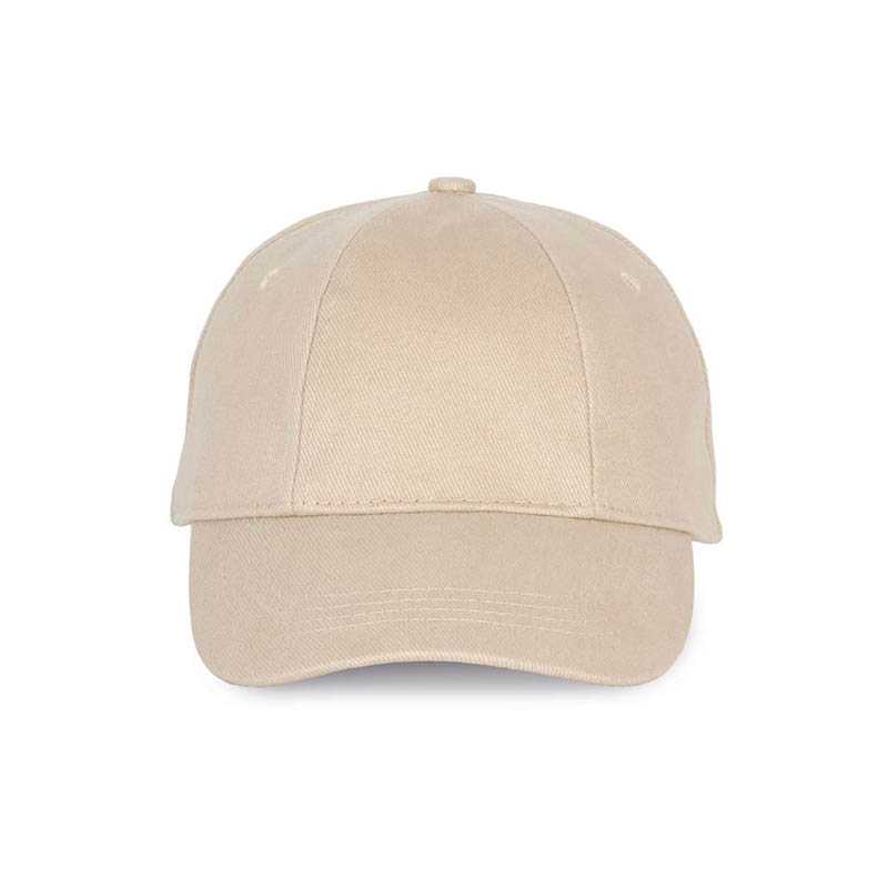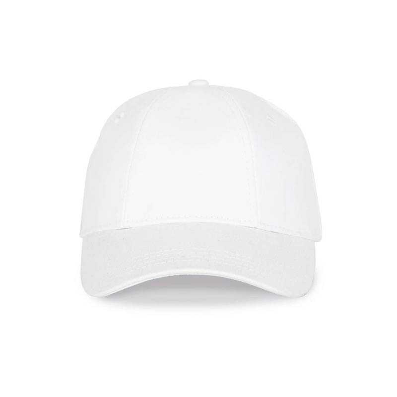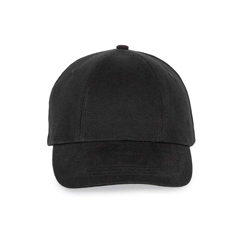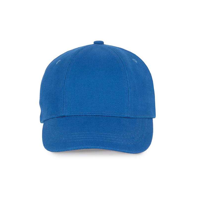 šestpanelový strih, vystužené 2 predné panely, prešívaný, zlahka prehnutý šilt, obšité vetracie otvory, potiaca páska, velkost nastavitelná suchým zipsom.Brúsený keper, 100 % bavlna.