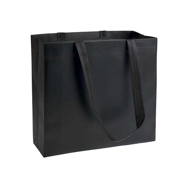 Laminated, heat-sealed 100 g/m2 non-woven fabric shopping bag with gusset and long handles