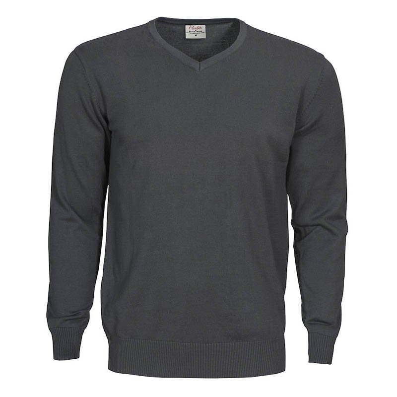 Knitted sweater. V-neck, fully fashion, 1x1 rib at bottom hem and bottom sleeve. · 60% cotton, 40% polyester 12gg · 100 white, 400 red, 600 navy, 632 blue, 728 green, 900 black, 935 grey · S–5XL
