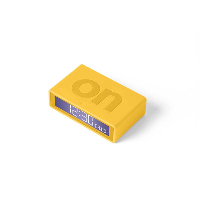 Mini reversible travel alarm clock - ON/OFF faces - LCD electroluminescent display - Touch control to snooze and light display Power supply: 2 AAA batteries (included) - Material: rubber / ABSSuggested branding: silkscreen - digital printing