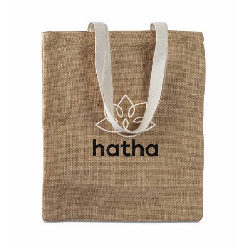 Ekologicky šetrná nákupní taška z juty s bavlněnými uchy.