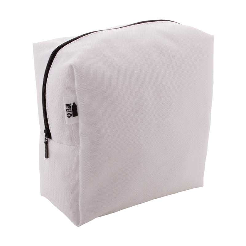 Na zakázku vyrobená kosmetická taštička na zip ve tvaru čtverce z 600D RPET polyesteru. S celoplošně tištěnou sublimační grafikou, nezahrnuje tiskovou přípravu. Min. mn.: 50 ks.
