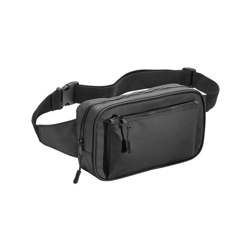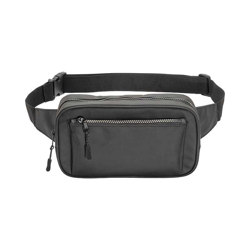 Water resistant polyester waistbag. Front pocket with zipper and adjustable belt