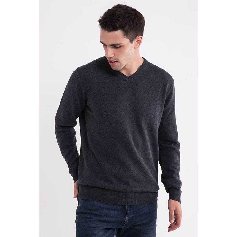 Pánsky sveter(LWW MEN’S V-NECK FINE GAUGE COTTON PULLOVER)>šedá(dark melange)>L - REPRE - reklamné predmety