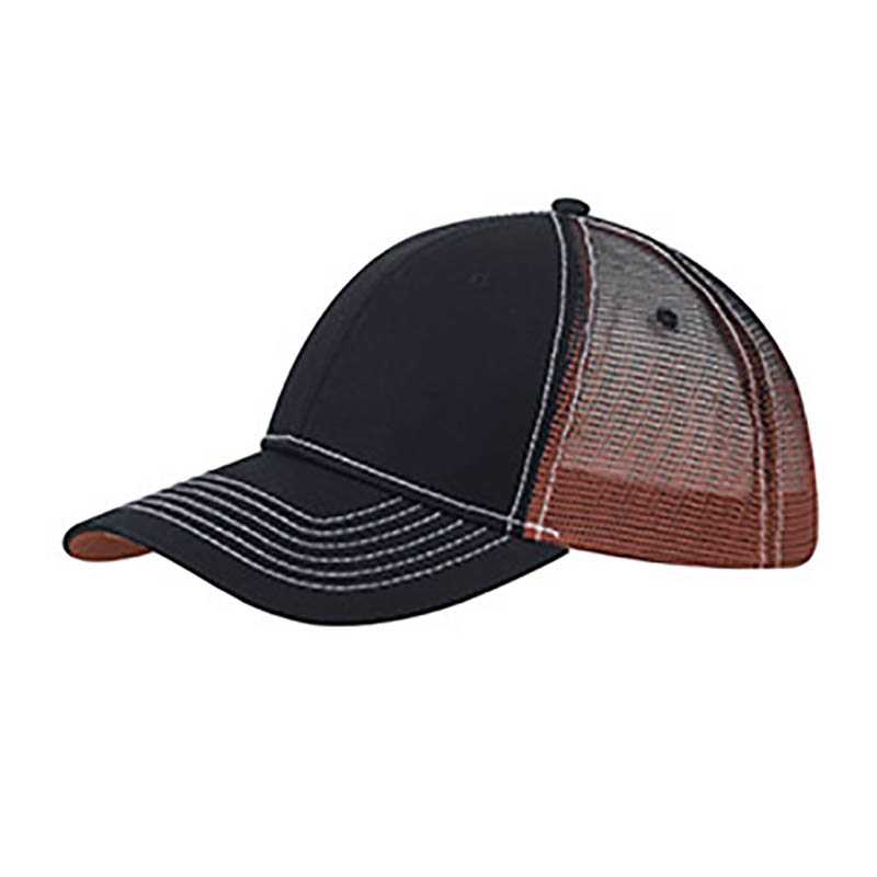 6 panelová trendy čepice se síťkou.Mix materiálů (polycotton).2 obšité větrací otvory na předních panelech.Dekorativně prošitý kšilt.Plastové zapínání .24/144 . (ks v jednom sáčku / celkem ks v kartonu).