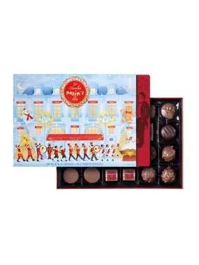 Under a starry night, in an illuminated capital, Maxim's invites you to plunge into the magic of Christmas. Every day, a chocolate surprise, combining refinement and indulgence, will enhance your celebrations.Gianduja, chocolates with hazelnut pieces, lac