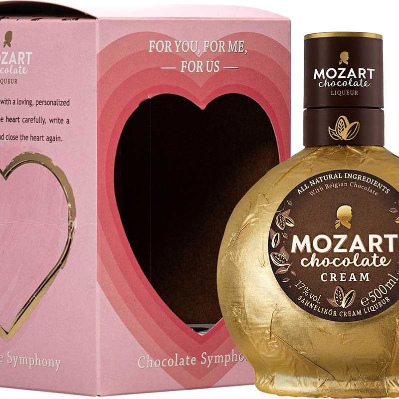 Tento likér je vyrobený z kakaa, ktoré je zmesou forastero a trinitario zo západnej Afriky. Obsahuje čerstvú smotanu, belgickú tmavú čokoládu, pravú Bourbon vanilku z Madagaskaru, granulovaný cukor a stredný diel destilátu z cukrovej repy. Tento lahodný krémový likér, dodá dotyk sladkosti a spraví váš deň nezabudnuteľným. Mozart Chocolate Cream získal veľké množstvo celosvetových ocenení a medailí. Nachádza sa v peknom červeno-ružovom romantickom darčekovom balení, vďaka ktorému môžete darovať likér svojej drahej polovičke. Tip na drink Chocolate Espresso Martini: 4 cl čokoládového likéru Mozart Cream Chocolate zmiešame s 3,5 cl studeného espressa a 2,5 cl vodky.