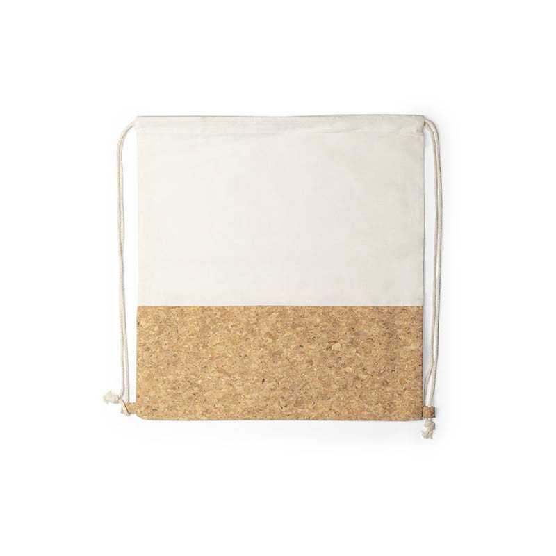 NOVINKA 2025. Nature line drawstring backpack in soft cotton and natural cork. Self closing strings in natural tone and reinforced corners.