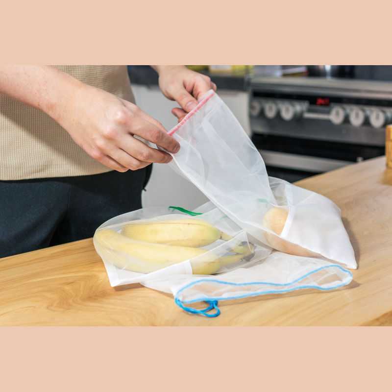 Sťahovacie vrecúško z recyklovaného PET materiálu, ktoré môžete v prípade potreby vyprať. Použite ho opakovane a znížte tým množstvo ťažko rozložiteľného odpadu.