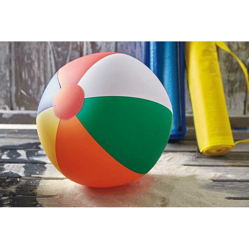 Inflatable beach ball ATLANTIC with white and coloured panels, 16" deflated