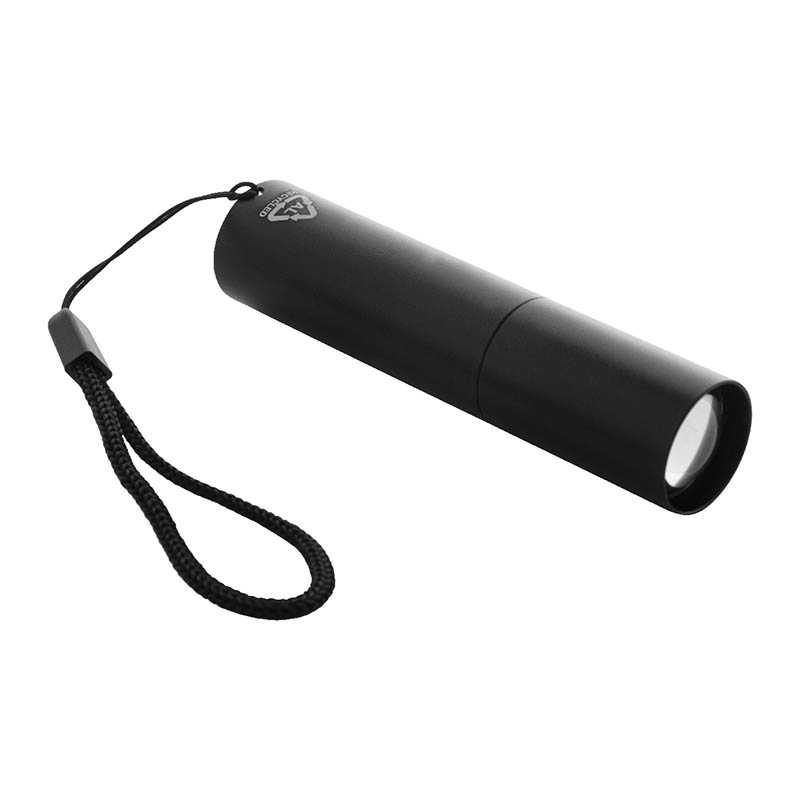 NOVINKA 2025. Hliníková dobíjecí svítilna. 110 lumenů, 3 režimy světla a zoom. Vestavěná dobíjecí baterie 400 mAh a nabíjecí kabel jsou součástí dodávky.
