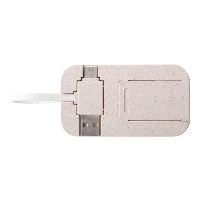 Plastový USB hub z bambusu a ekologickej pšeničnej slamy s funkciou stojančeka na mobil. S 2 USB a 2 USB-C porty, USB 2.0. Vrátane kábla s pripojením USB a USB-C.