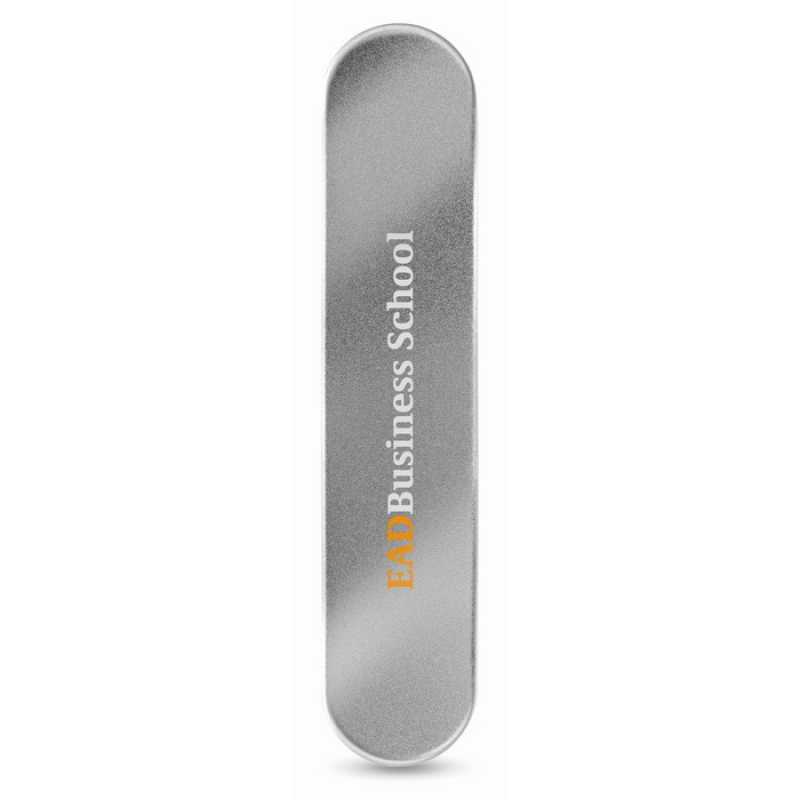 Multifunkční stříbrné kuličkové pero. Černá náplň, bílé LED světlo, červené laserové ukazovátko a hrot pro dotykové obrazovky. Obsahuje 3 baterie. Dodává se v kovové krabičce.