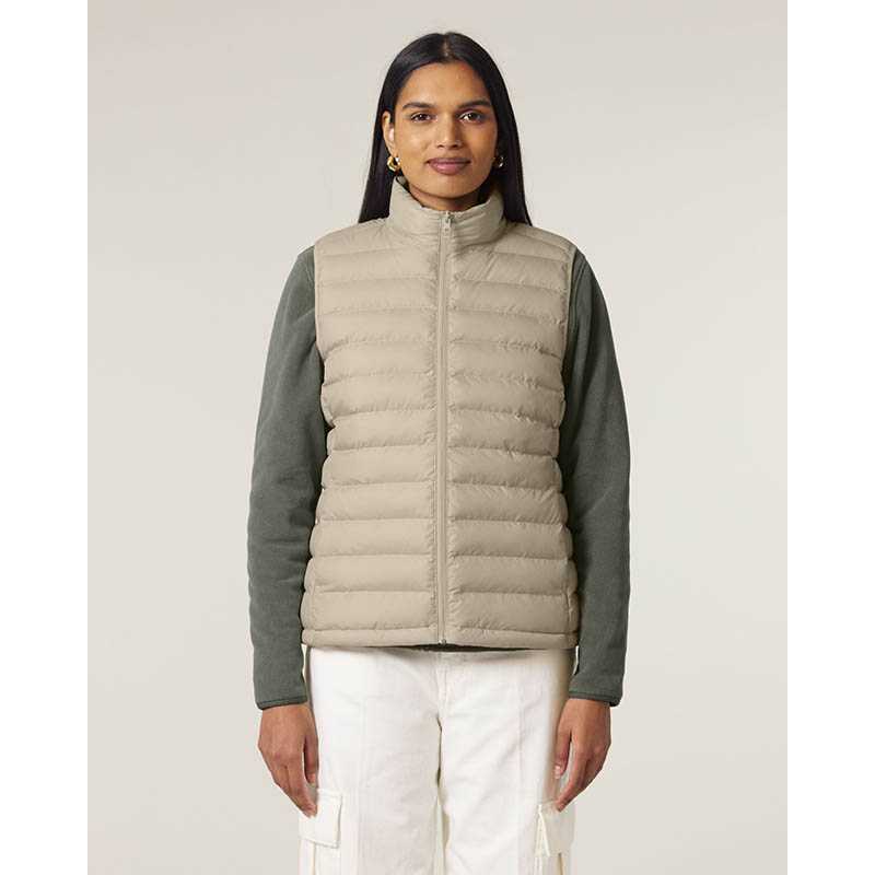 NOVINKA 2025. Sleeveless High collar Reverse nylon zip at center front Zipped welt pockets with extra grosgrain puller Elastic tape binding at armhole Fully quilted Side panels for better shape Inside seams with binding finish Bo