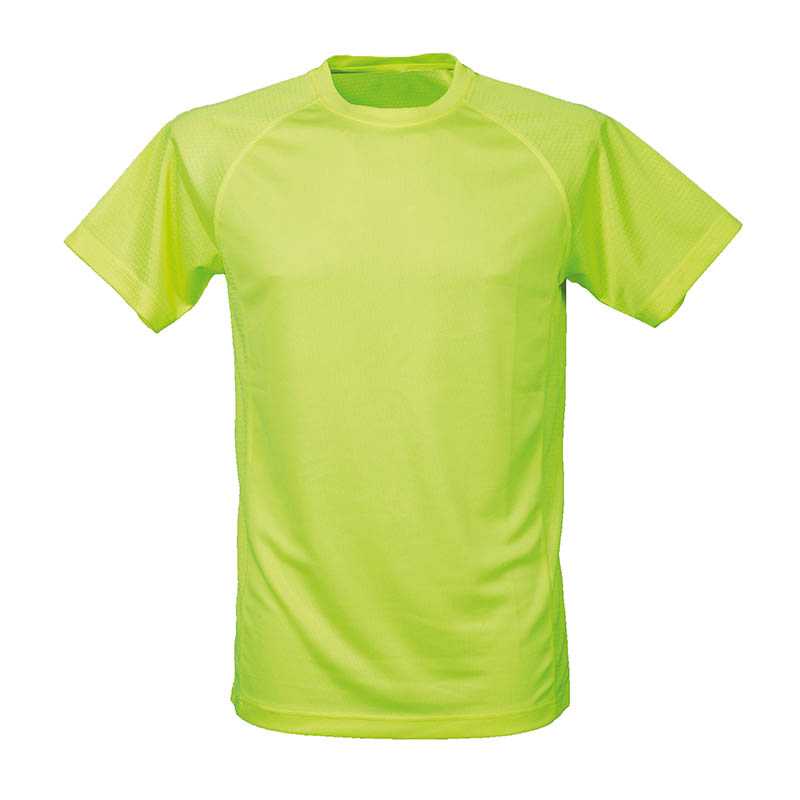Sport t-shirt in 100% polyester - Round neck - No label - Raglan sleeves - Fabric processing in ripstop on back, sleeves and sides to increase breathability - 10 pieces folded in half, packed in one polibag - In each pack there is a single size - Individually sold too