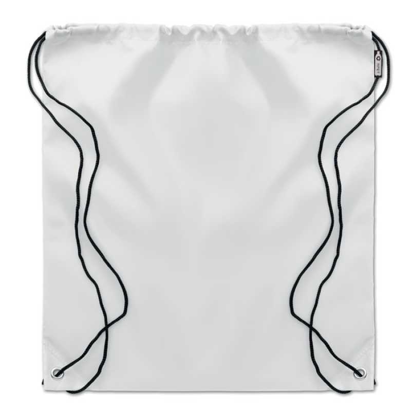 Batoh se šňůrkami ze 190T RPET s PP šňůrkami. Materiál přátelský k životnímu prostředí vyrobený z recyklovaných PET lahví.
