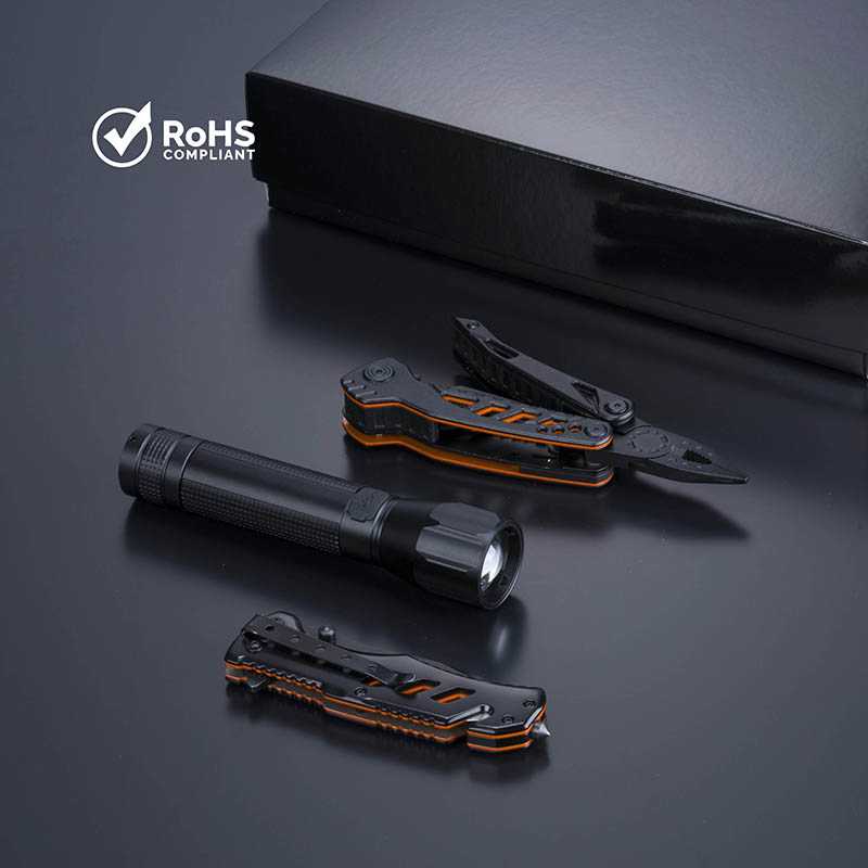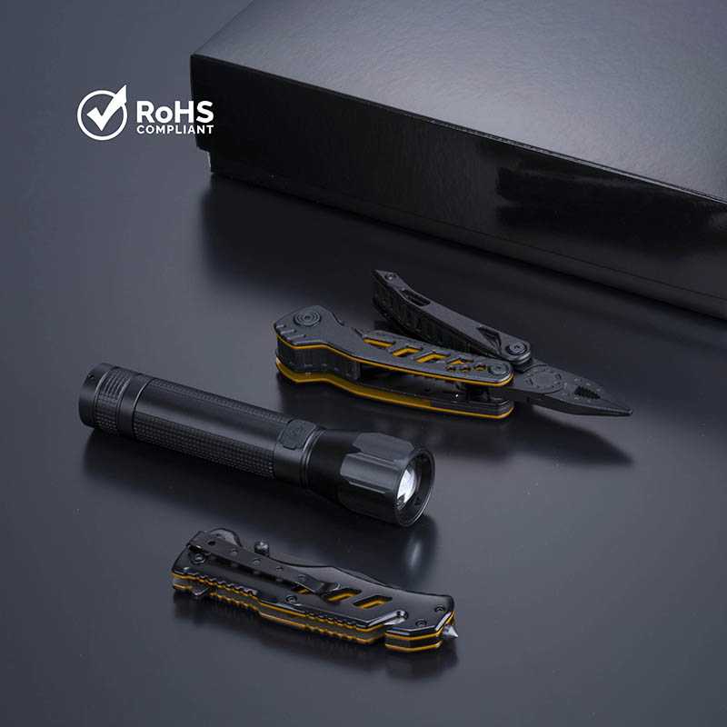 NOVINKA 2025. Praktická sada z kolekcie Optima, ktorá obsahuje veľký multifunkčný nástroj, záchranný nôž a veľkú baterku. Multifunkčný nástroj má univerzálne kliešte na základni, pílu, nôž, krížový a plochý skrutkovač, otvárač na fľaše a konzervy a pilník na nechty. Obsahuje aj funkciu Safe, ktorá zabraňuje náhodnému zatvoreniu noža, čím zaisťuje bezpečnosť používateľa. Sklápací záchranný nôž je vybavený bezpečnostným mechanizmom typu liner lock, ktorý zabraňuje zatvoreniu čepele počas používania. Ergonomická rukoväť končí pevným rozbíjačom skla a rezačom pásov. Baterka je vyrobená z vysokokvalitného hliníka, ktorý zaisťuje odolnosť a ochranu pred poškodením. Má stroboskopický režim a funkciu zoomu na nastavenie svetelného lúča. Baterka je nabíjateľná cez kábel. Zabalené v čiernej krabičke.