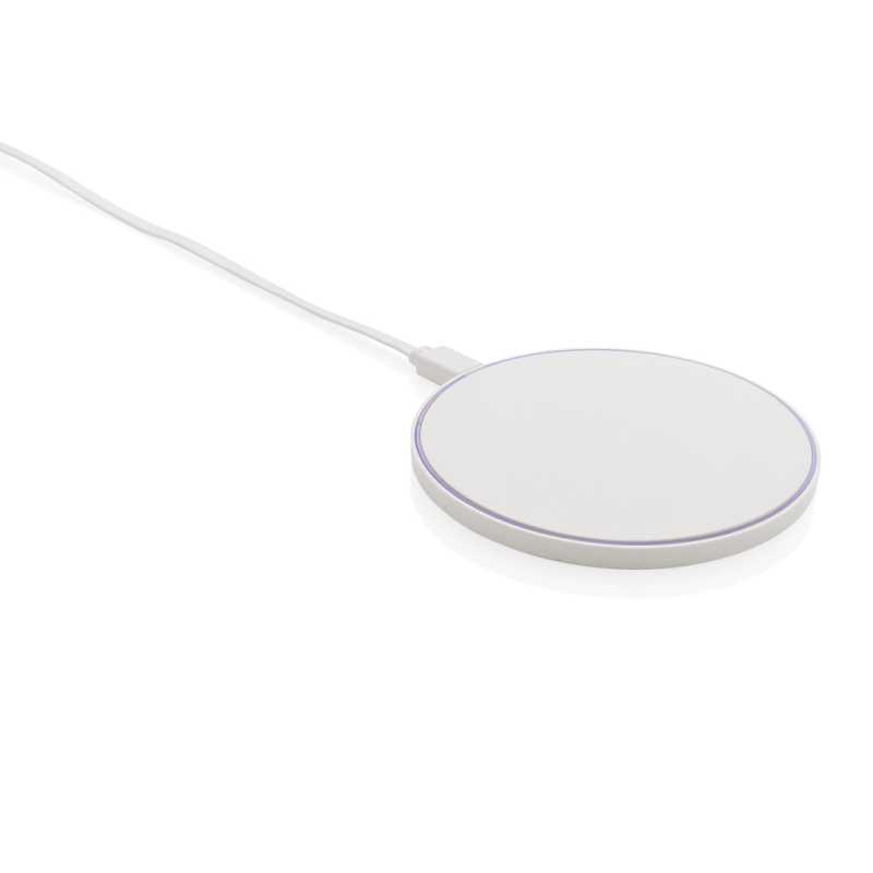 Rýchla bezdrôtová nabíjačka z ABS s pogumovaným povrchom a podsvietením. Maximálny výkon bezdrôtového nabíjania 10 W pre rýchle nabíjanie. Kompatibilné so zariadeniami s technológiou bezdrôtového nabíjania. Obsahuje 1 m USB kábel. Dodávané v darčekovej krabičke. o99 x 9 mm | Kábel: 1000 mm
