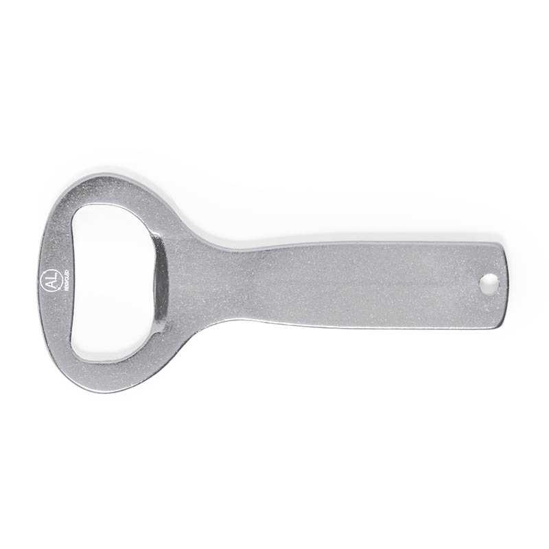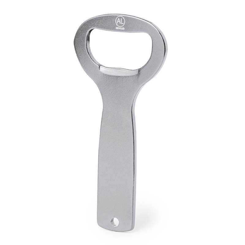 Otvárač na fľaše z recyklovaného hliníka s kovovým krúžkom na kľúče.