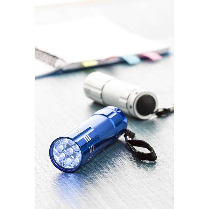 Hliníková baterka s 9 LED diódami a remienkom na ruku. Vrátane 3 AAA batérií.