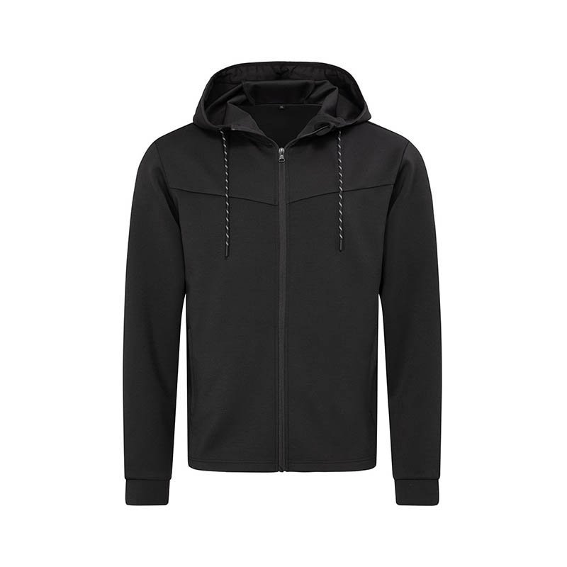 Eco-friendly from recycled material. Modern style for both athletic and casual wear.eco-friendly functional fabric, made from recycled plastic bottles (8 per jacket), metal eyelets for drawcord (nickel-free), scuba hood with elastic binding and 2-colour drawcord, 2 side pockets with hidden zippers, zipper with metal puller (nickel-free), decorative flatlock seams, self-fabric cuffs, neck tape, side seams, premium woven size label in the collar, tear-away care label in the side seam