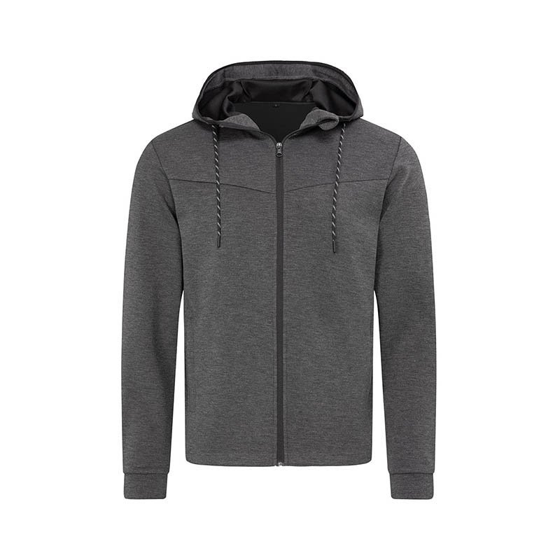 Hood jacket. Metal zip at center front and pockets. Drawstring at hood. · 100% terry cotton, enzyme wash, 280 g/m² · 555 faded blue, 955 faded grey, 600 navy, 121 grey melange, 900 black · S–XXXL