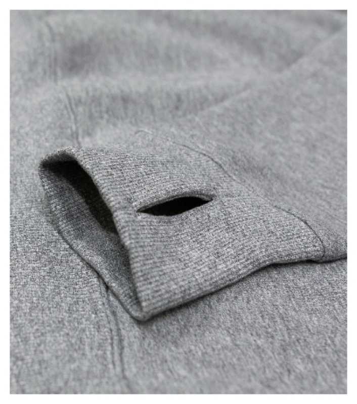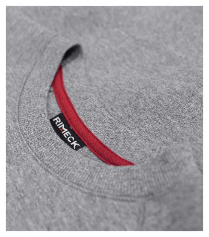 Set-in sleeve 1x1 rib at neck collar, sleeve hem and bottom hem Inside herringbone back neck tape Self fabric half moon at back neck Single needle topstitch at neck collar Armhole, sleeve hem and bottom hem with twin needle topstitch
