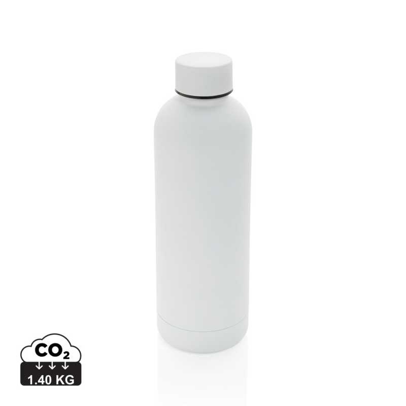Ideálna fľaša pre celodenné udržiavanie pitného režimu. Minimalistický, napriek tomu veľmi štýlový nadčasový design. Nápoje ochová až 5 hodín horúce a až 15 hodín studené. Vyrobená z RCS recyklovanej ocele. RCS (Recycled Claim Standard) je globálny štandard, ktorý umožňuje overiť použitie recyklovaného materiálu v produkte naprieč celým dodávateľským reťazcom. Celkový podiel recyklátu podľa váhy produktu: 80%. Objem: 500 ml. Bez BPA. Balené v FSC® kraftovej darčekovej krabičke. 2% z výťažku každého predaného produktu bude venovaných Water.org.