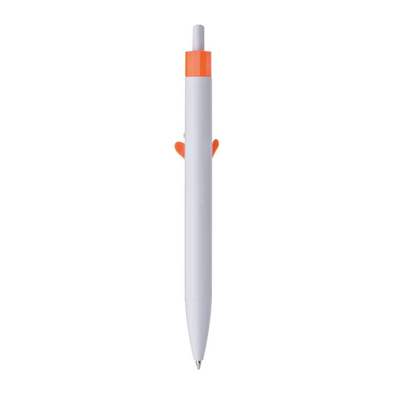 Plastové guľôčkové pero s veľkou modrou tuhou, bielym telom a klipom v tvare ruky. Široký výber až zo 6 motívov.