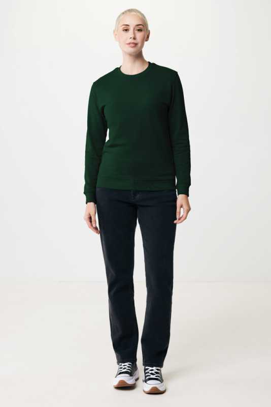 Kvalita.80 % organicky pestovaná bavlna – 20 % recyklovaný polyester.3 priadze .Kartáčovaná podšívka.Zvonku: 100 % organická bavlna.Štýl.Strihané a šité.Raglánové rukávy.2 x 2 rebrované manžety, golier a spodný okraj.Polmesiac vnútri goliera.Páska na krku.