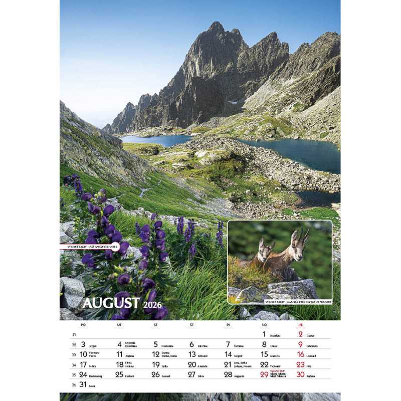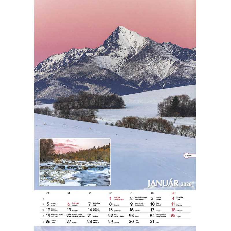 Kalendár Tatry 2026. Formát kalendára: 31,5 x 45 cm. Kalendárium: slovenské mesačné menné . Rozsah kalendára: 14 listov. Twinová väzba. Priestor na potlač: 31,5 x 7 cm. Autor: Boris Michaliček