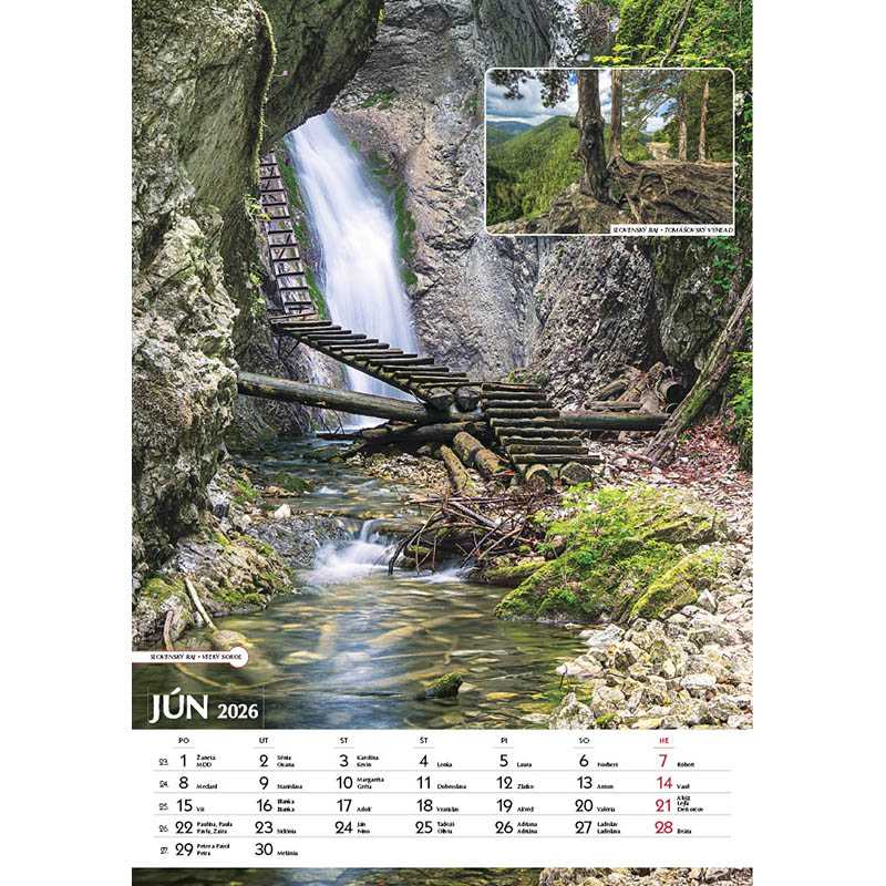Kalendár Malebné Slovensko 2026. Formát kalendára: 45 x 31,5 cm. Kalendárium: slovenské mesačné menné. Rozsah kalendára: 14 listov. Twinová väzba. Priestor na potlač: 45 x 7 cm. Autor: Jozef Sádecký