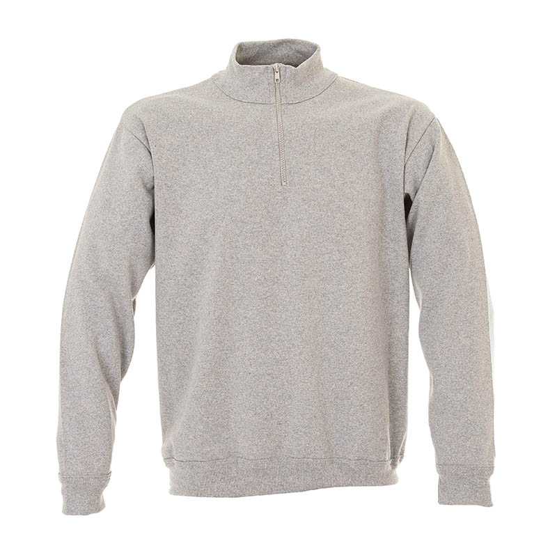 80% cotton - 20% polyester sweater - Ribbed collar - Short zip - Ribbed cuffs and band at waist - Tape inside collar - Stiching