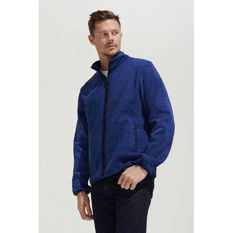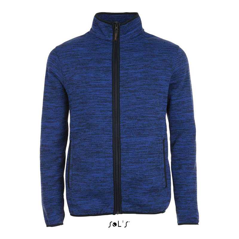Kvalita.100 % polyester.Vnútri kartáčované.Štýl.Unisex.Bunda na zips, mouliné efekt.2 vrecká.Vysoký golier.Kontrastné elastické previazanie na manžetách a v spodnej časti.