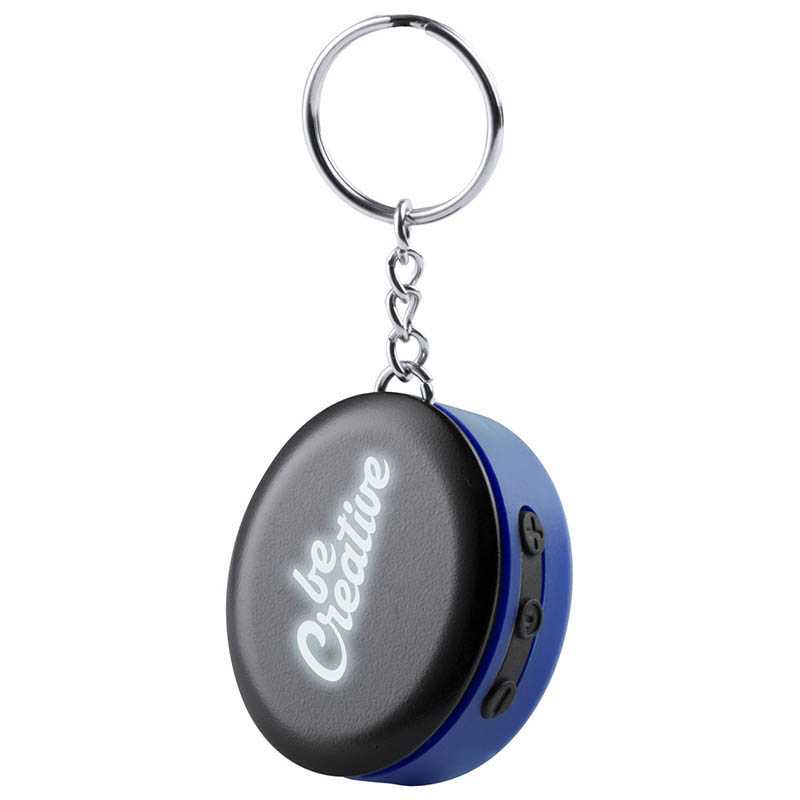 Bluetooth reproduktor v plastovém obalu, s vestavěnou dobíjecí baterií a 1 LED světlem uvnitř pro osvícení laseru. S funkcí handsfree volání. Vč. USB nabíjecího kabelu, s přívěškem na klíče..