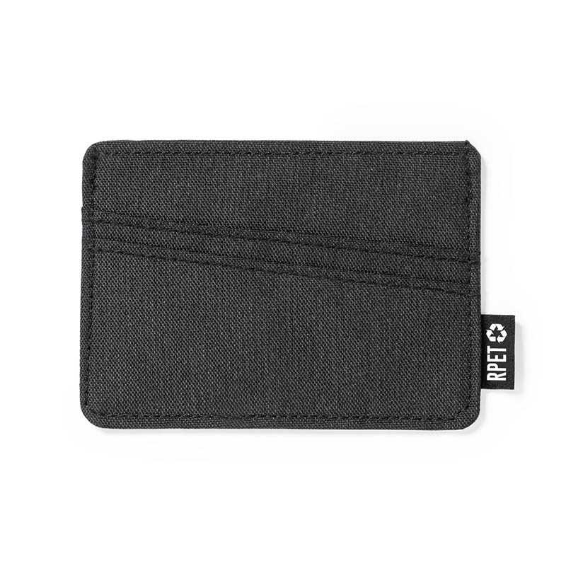 NOVINKA 2025. Stylish card holder made of durable 300D RPET polyester. With 3 independent compartments for cards and outside label with the RPET distinctive. RPET material is made from recycled plastic, to encourage the reuse of plastic waste and help the sustainability of the planet.