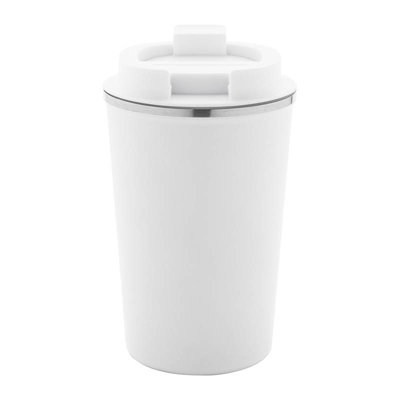 NOVINKA 2025. Insulated Cup made of double-walled stainless steel with a capacity of 350 ml. Exterior in rubber finish in matt finish, specially designed for laser branding. Including a transparent snap-on lid, with dispenser and easy-open, BPA free. It is ideal for your desk, table, or any surface where you can enjoy your favorite drink.