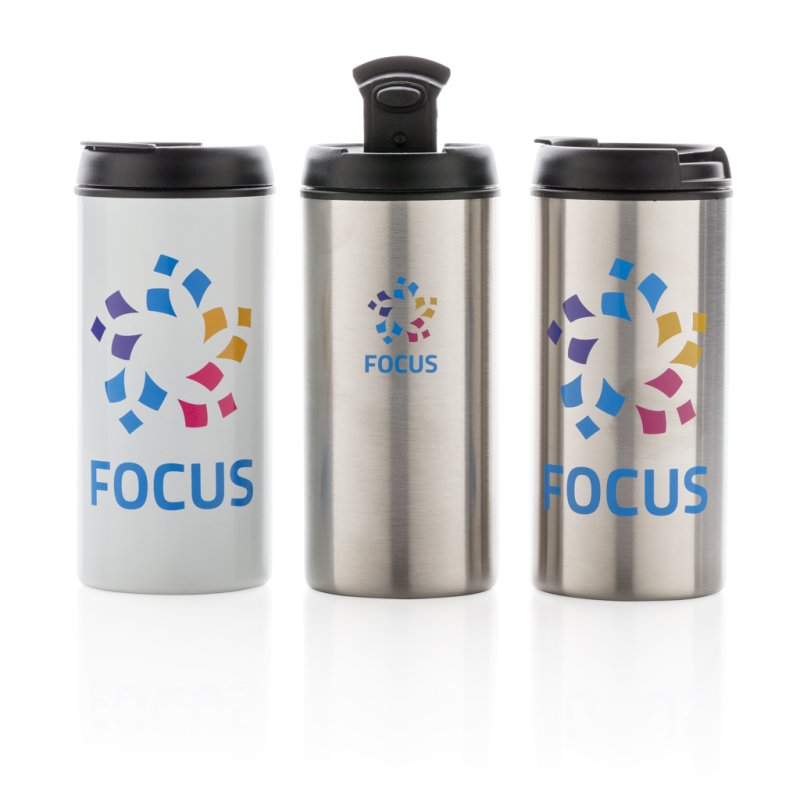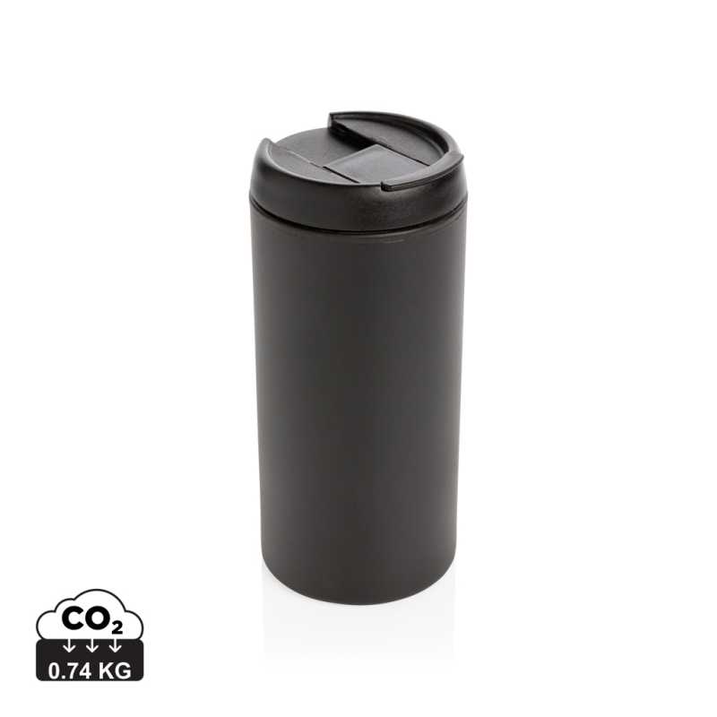 Minimalistický termohrnček Metro s odklápacím viečkom a nestarnúcim dizajnom. Vyrobené z RCS reyklovaných materiálov. RCS (Recycled Claim Standard) je globálny štandard, ktorý umožňuje overiť použitie recyklovaného materiálu v produkte naprieč celým dodávateľským reťazcom. Celkový podiel recyklátu podľa váhy produktu: 37%. Objem: 300 ml. Balené v FSC® kraftovej darčekovej krabičke. Bez BPA. Registrovaný dizajn®