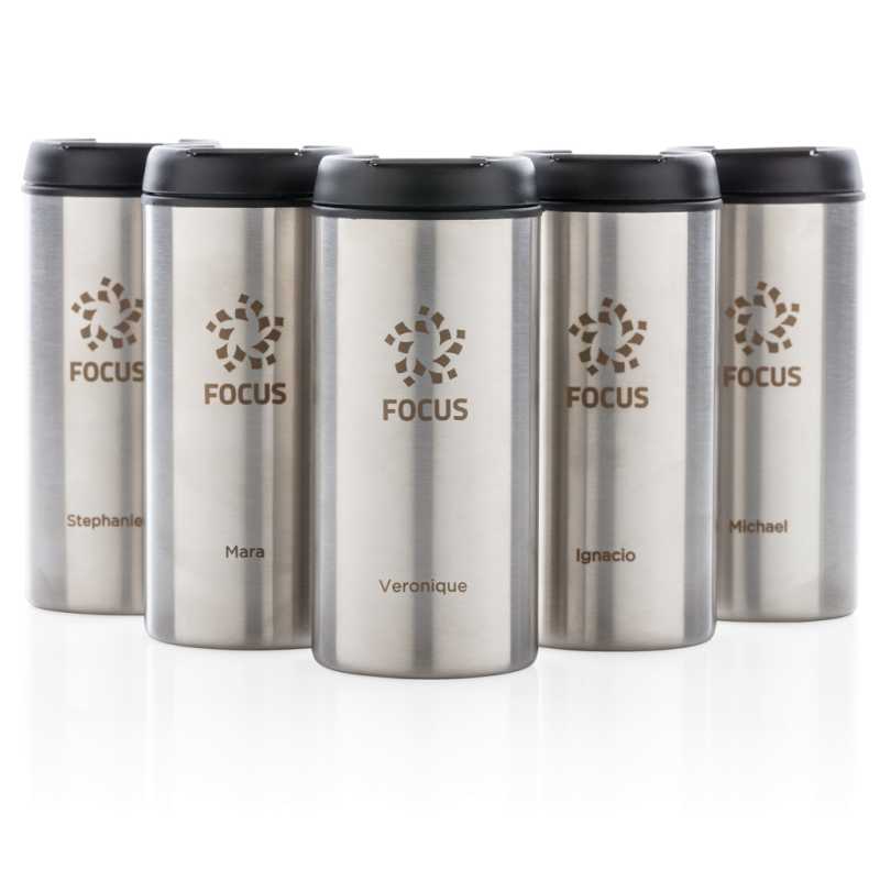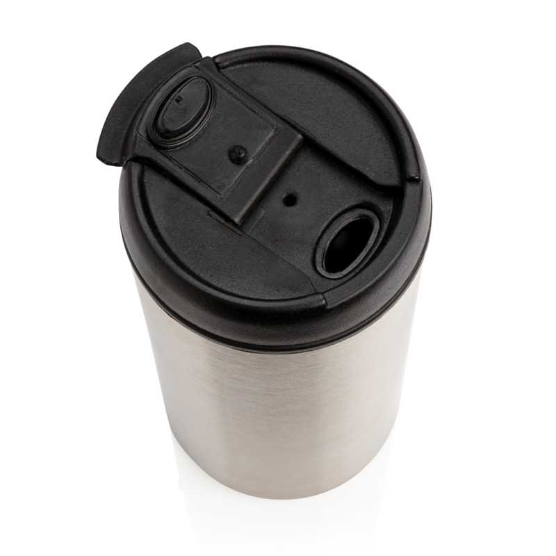 Jednoduchý termohrnček z nehrdzavejúcej ocele so špeciálnou antimikrobiálnou ochranou Biomaster. Tá je oproti štandardným ochranám obsiahnutá priamo VO výrobku, miesto NA výrobku a tým zaisťuje trvalú ochranu. Výrobok bol testovaný v súlade s ISO 22197 (antimikrobiálna efektivita), je 100% bezpečný pre užívateľa a neznižuje možnosť recyklácie. Navyše obsahuje vystopovatelnou zložku Verimaster, pomocou ktorej je možné Biomaster ošetrenie garantovať. Uzatváratelné viečko. Vnútri plast (PP), zvonku nehrdzavejúca ocel. Objem: 250ml. Bez BPA.
