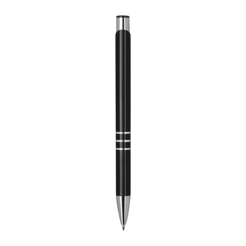 Plne lakované kovové guľôčkové pero s 3 ozdobnými prúžkami. Pero má veľkú modrú náplň.