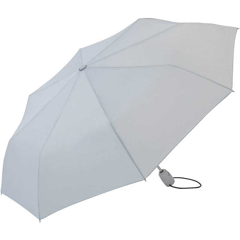 Convenient automatic function for quick opening, high-quality Windproof PLUS system for maximum frame flexibility in stormy conditions, cover with trendy reflective piping in silver, Soft-Touch handle with shiny push-button and promotional labelling option, sleeve with trendy reflective piping