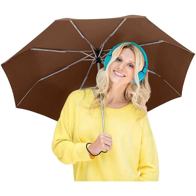 Convenient automatic open/close function for quick opening and closing, high-quality Windproof PLUS system for maximum frame flexibility in stormy conditions, depending on the colour, also available with waterSAVE® label on the closing strap (with new deliveries), chromed steel shaft, Soft-Touch handle in colour matching cover with silver push-button, elastic loop and promotional labelling option, sleeve with black piping. Also available as another mini pocket umbrella (art. 5565), as regular umbrella (art. 7560) and golf umbrella (art. 7580).