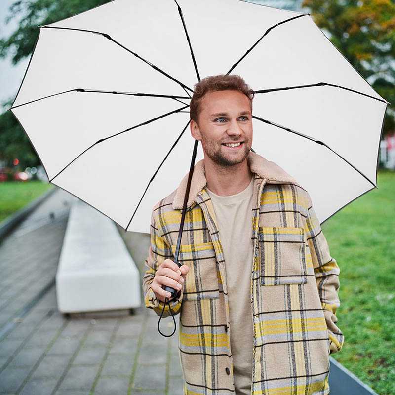 Automatický vreckový dáždnik odolný voči búrkam s pohodlným uchopením. Otvára a zatvára sa pomocou tlačidla.