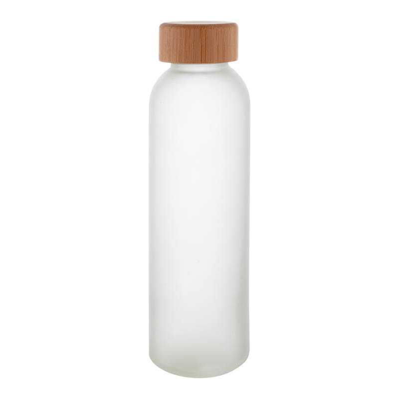 Fľaša z matného skla s bambusovým uzáverom, 500 ml. Nevhodné pre sýtené nápoje.