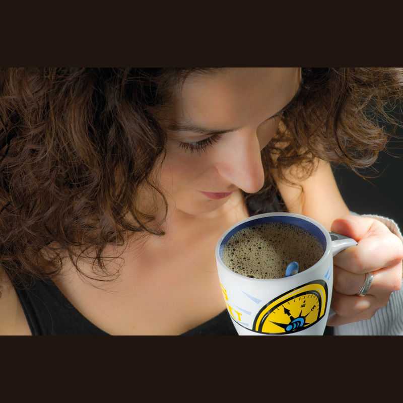 Keramický hrnček, z vnútornej strany farebný, s lyžičkou v rovnakej farbe ako je vnútro. Nemôže chýbať ani v jednej domácnosti.
