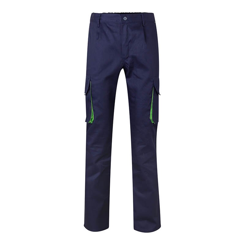 High Visibility Two-Tone Multi-Pocket Trousers. Made of a sturdy cotton twill fabric blended with polyester for strength and durability, includes two sewn reflective tapes on leg cuffs to enhance user visibility. Garment certified as a High Visibility Category II PPE based on 13688 and 20471 standards, Class 1.Back elasticated waistband for a better fitting, double main seams and extra high-wear reinforcements with safety bartacks, ensuring long-lasting strength and durability. Two slanted hip pockets, two gusseted side pockets and two back pockets, all four with velcro flap closure and a two-tone reflective puller for easy opening and a secure and convenient storage.Suitable marking methods: screen printing, embroidery, transfer printing, vinyl application. Ideal as workwear and uniforms.