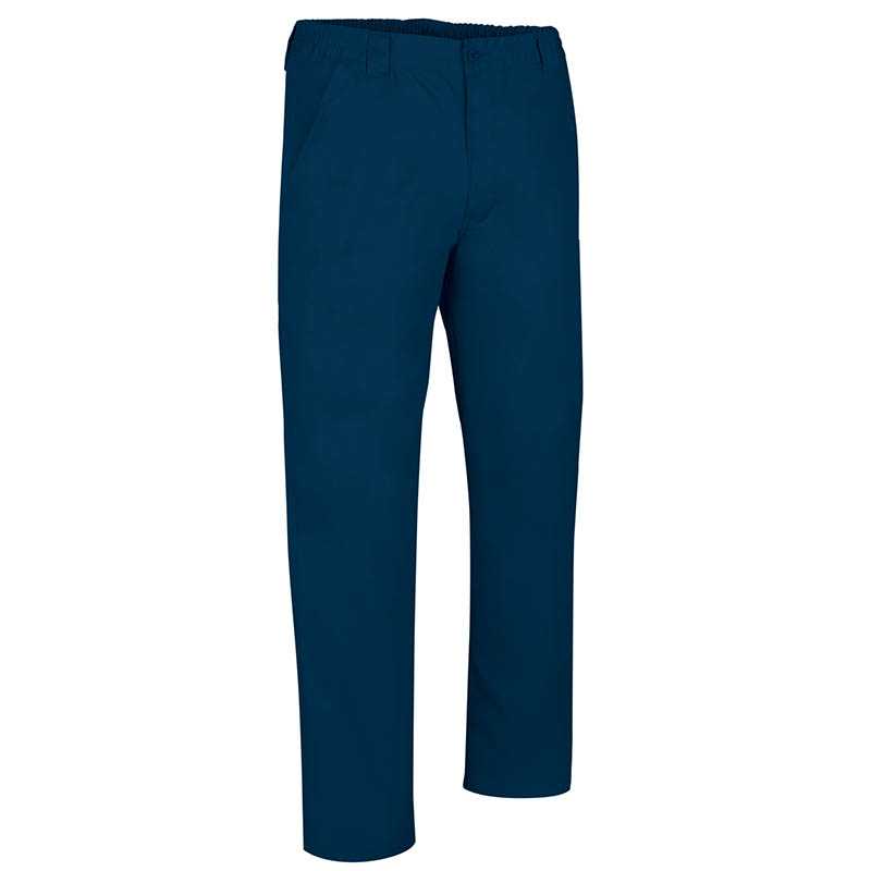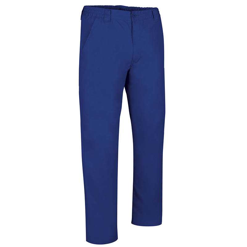 Straight Cut Work Trousers.Made of thick cotton twill fabric blended with polyester for strength and durability.Button-and-zipped flap fastening, back and sides elasticated waistbands and belt loops for a better adjustment and a comfortable fit.Two slanted hip pockets and a buttonhole closure back pocket for easy acces and convenient storage. Double main seams and extra high-wear reinforcements with safety bartacks, ensuring long-lasting strength and durability.Suitable marking methods: screen printing, embroidery, transfer printing, vinyl application.Ideal as workwear and uniforms.