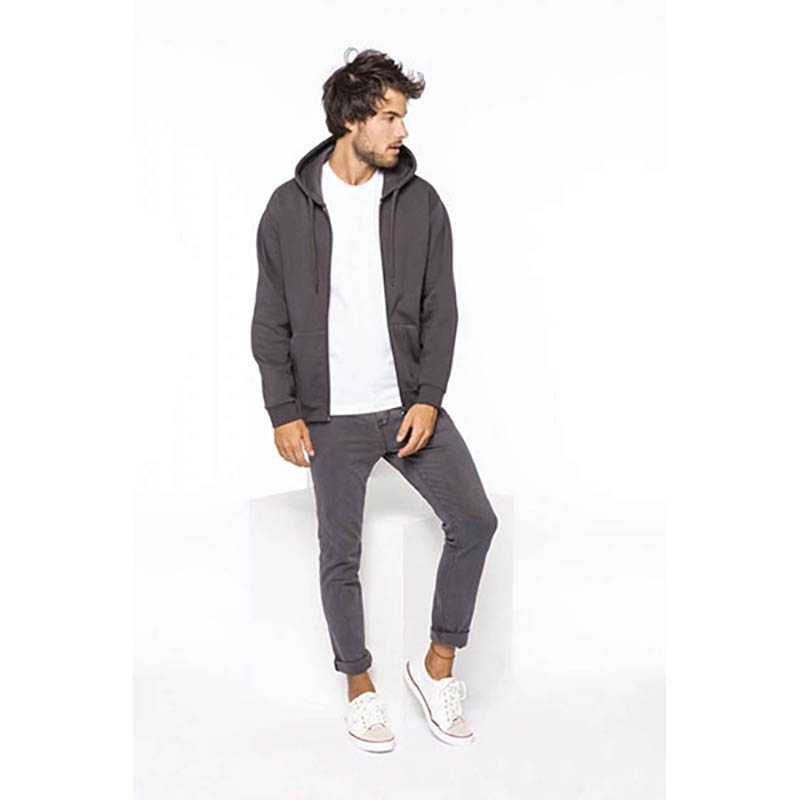 80 % bavlna/20 % polyester.Kartáčovaný flís.Vsadené rukávy.Zapínanie na nylonový zips.Podšitá kapucňa so šnúrkou v rovnakej farbe.Klokanie vrecká.Rebrované manžety a lem.Certifikát STANDARD 100 podľa OEKO-TEX®N° CQ1007/7, IFTH.Pri výrobkoch v tmavosivej farbe sa môžu vyskytnúť rozdiely vo farebných odtieňoch.