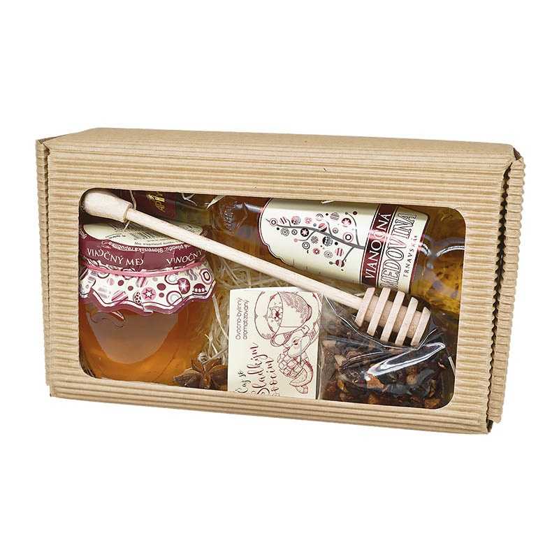 Včelovina Original 500 ml, krémový med so škoricou 212 ml, kvalitný bylinný čaj 20 g. V darčekovom balení.