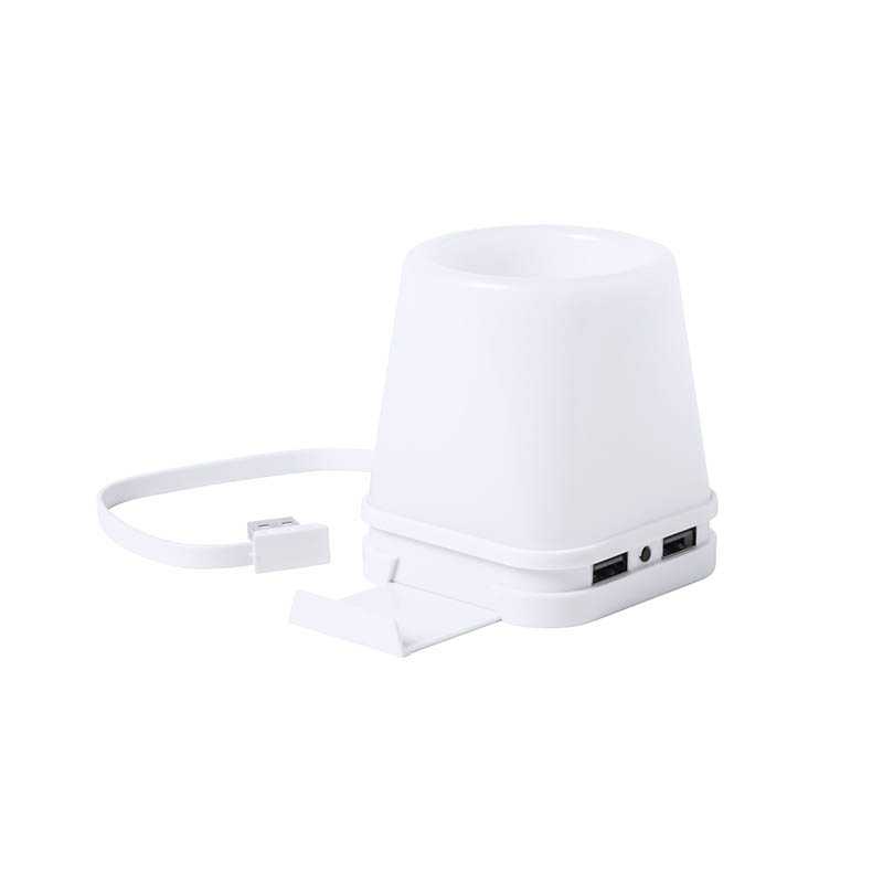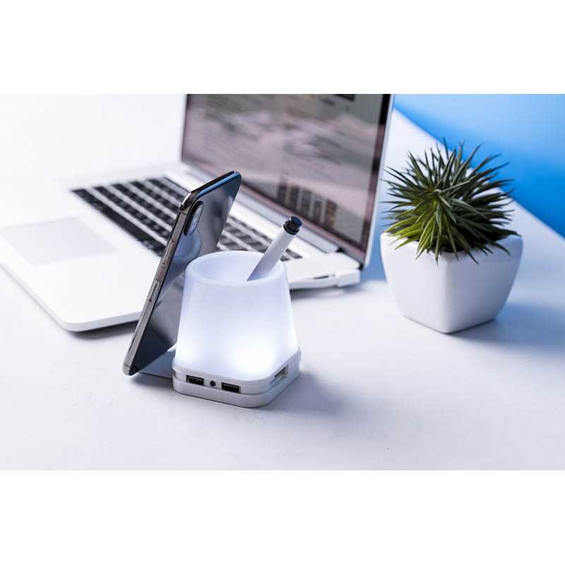Plastový stojan na perá s USB hubom so 4 portmi, vstavaným stojanom na mobil a 4 LED svetlami. USB 2.0.